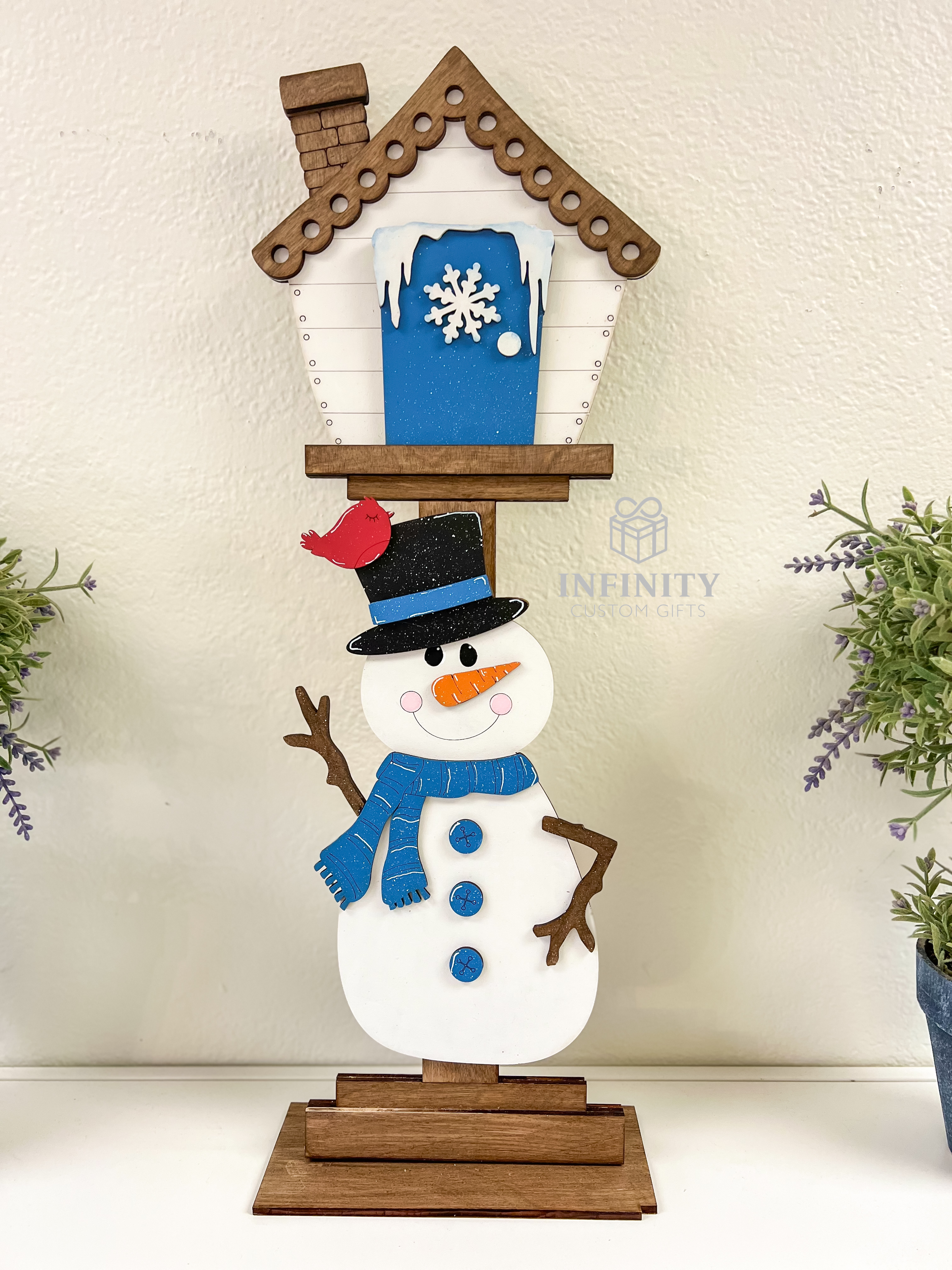 Laser Cut Interchangeable DIY kit ready for you to paint! The Snowman for the birdhouse interchangeable attachment comes unfinished and unassembled for easy painting and then you glue together!