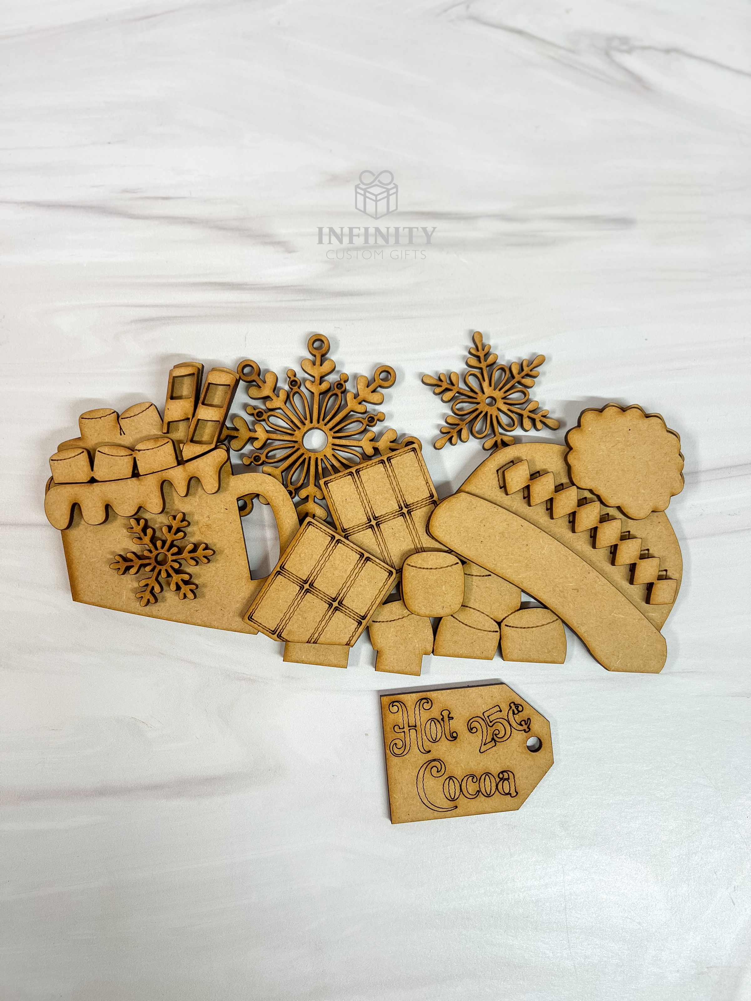Laser Cut Interchangeable DIY kit ready for you to paint! This interchangeable Hot Cocoa Insert for basket insert comes unfinished and unassembled for easy painting and then you glue together!