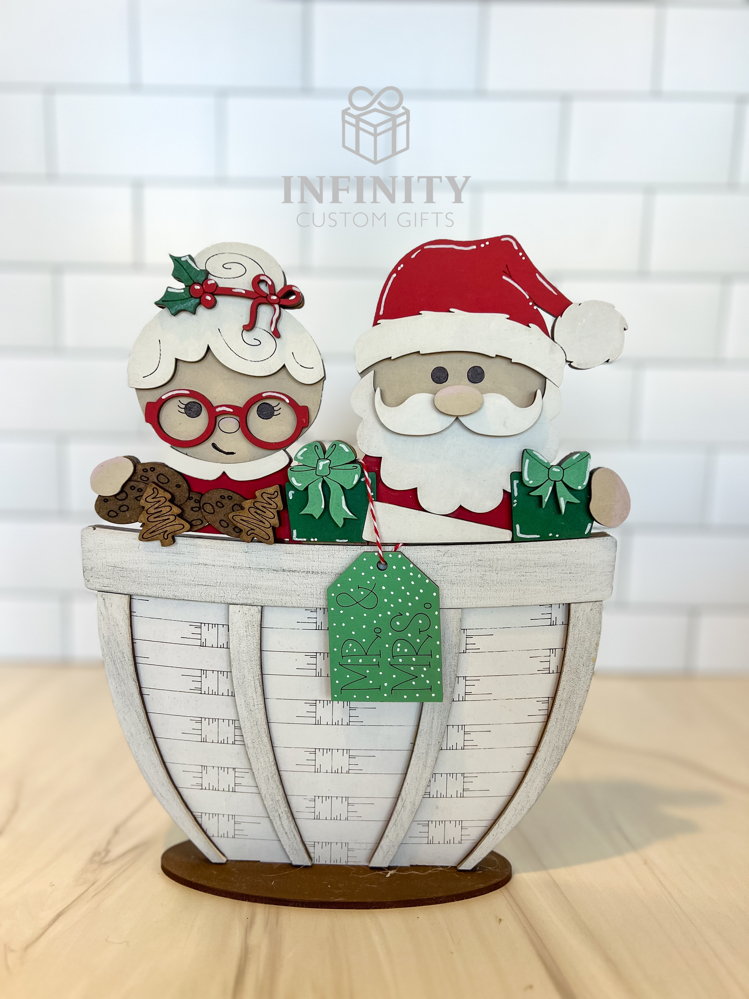 Laser Cut Interchangeable DIY kit ready for you to paint! This interchangeable Santa Mrs Claus Insert for basket insert comes unfinished and unassembled for easy painting and then you glue together!