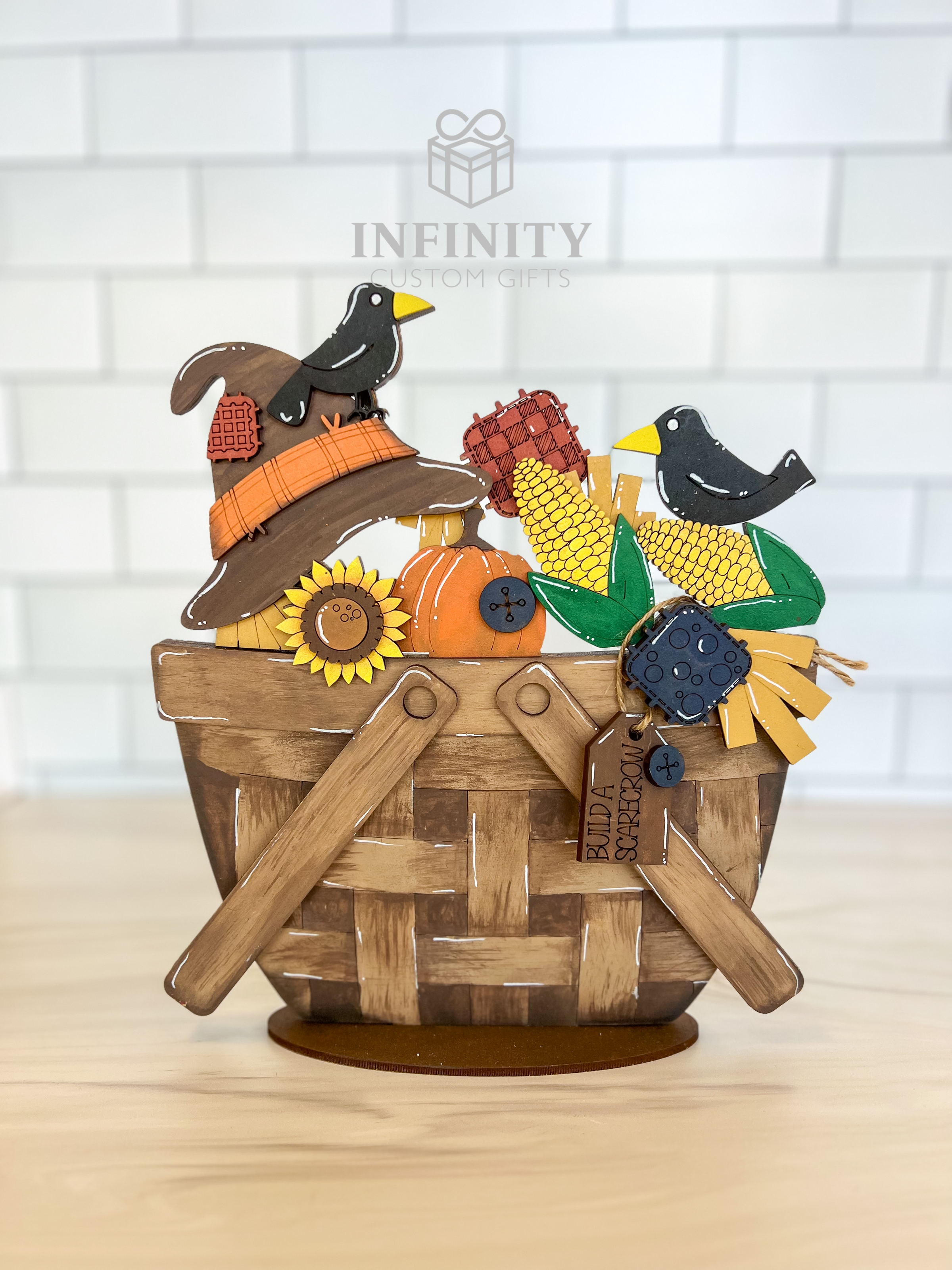Laser Cut Interchangeable DIY kit ready for you to paint! This interchangeable Scarecrow Insert for basket insert comes unfinished and unassembled for easy painting and then you glue together!